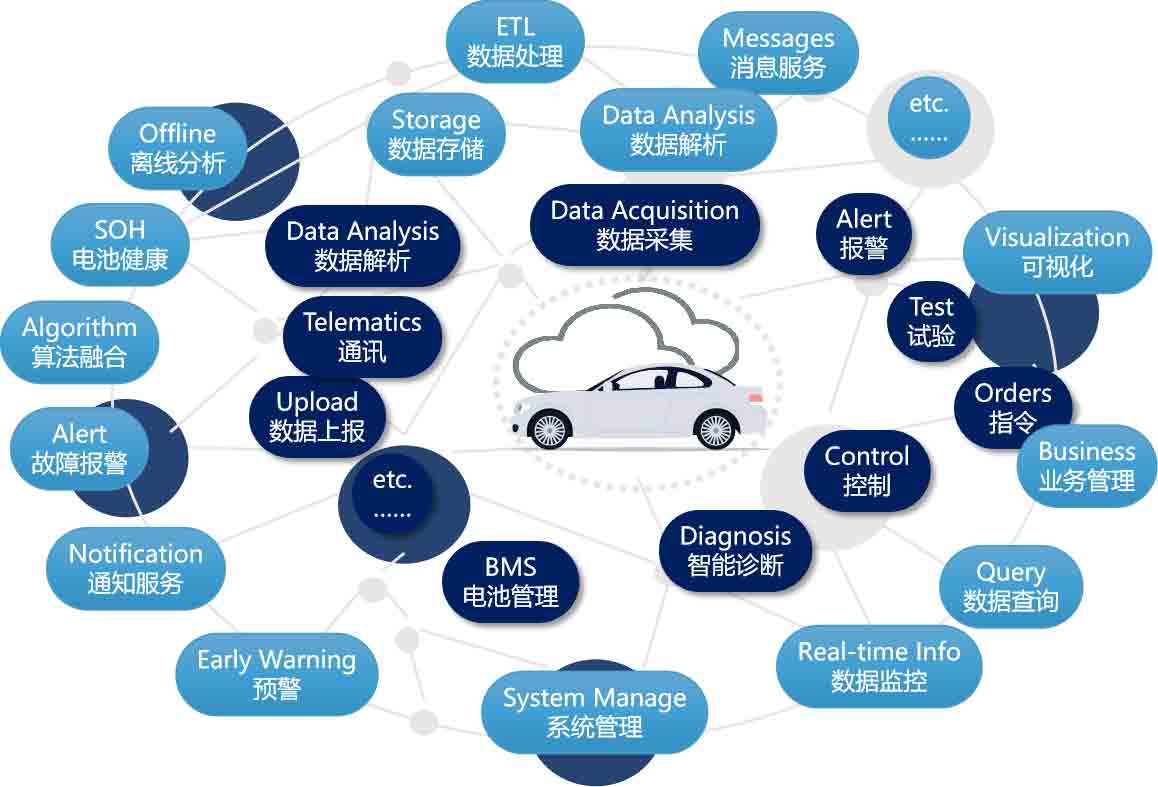 平臺提供數據,支持各類算法的融合、集成。算法引入后,后續(xù)數據將持續(xù)優(yōu)化分析模型,為電池健康、安全預警等功能提供分析預測的能力。