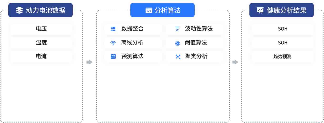 平臺提供數據,支持各類算法的融合、集成。算法引入后,后續(xù)數據將持續(xù)優(yōu)化分析模型,為電池健康、安全預警等功能提供分析預測的能力。