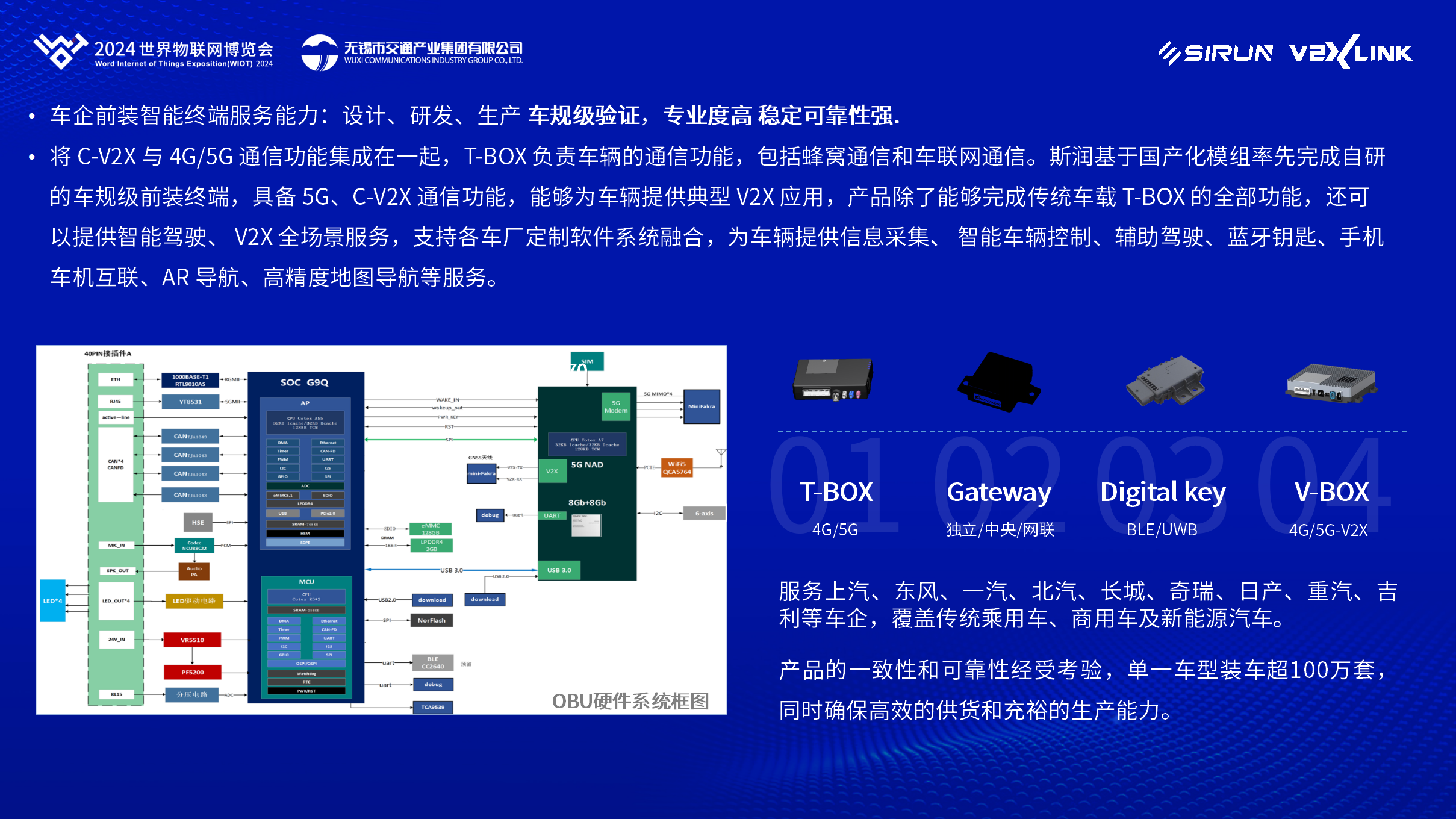 此外,斯?jié)櫶炖蔬€具備強(qiáng)大的前裝智能終端服務(wù)能力。公司設(shè)計(jì)、研發(fā)、生產(chǎn)的智能終端產(chǎn)品已經(jīng)廣泛應(yīng)用于傳統(tǒng)乘用車、商用車及新能源汽車,單一車型出貨量超100萬(wàn)套,產(chǎn)品的一致性與可靠性得到市場(chǎng)的廣泛認(rèn)可。這些智能終端產(chǎn)品不僅能夠完成傳統(tǒng)車載T-BOX的全部功能,更能夠提供智能駕駛、V2X全場(chǎng)景服務(wù),為車輛提供全方位的信息采集、智能車輛控制、輔助駕駛等多元化服務(wù)。